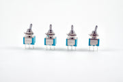 Premium mini toggle switches. Medium 7.5mm shaft length. Silver plated copper